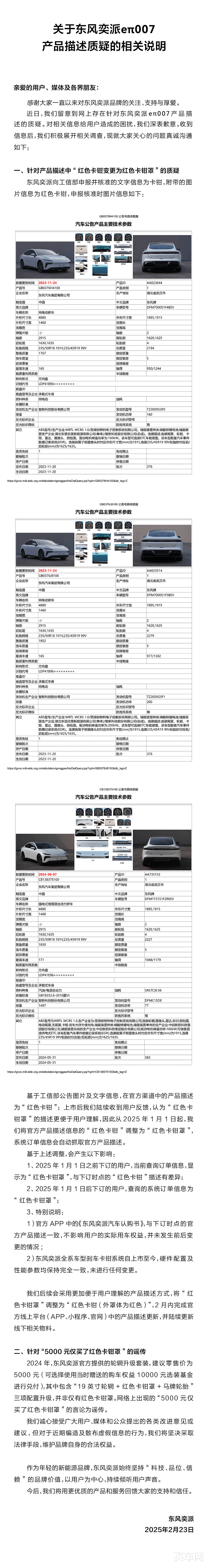 > 关于东风奕派eπ007产品描述质疑的相关说明